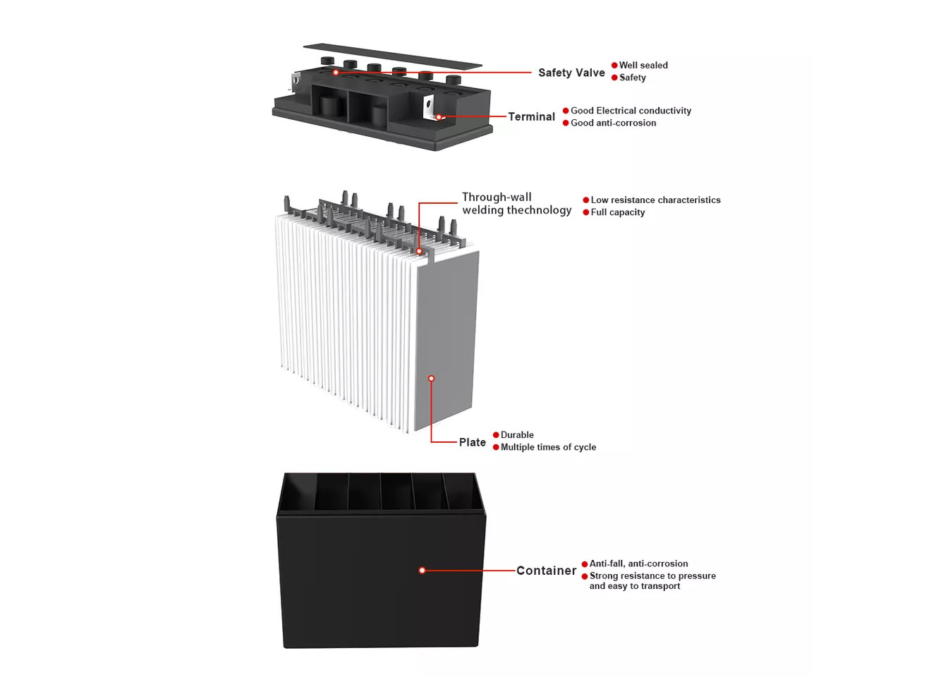 1. Высокочистый сплав руководств-олова, уменьшает тариф саморазряжения батареи и срок службы батареи роста.