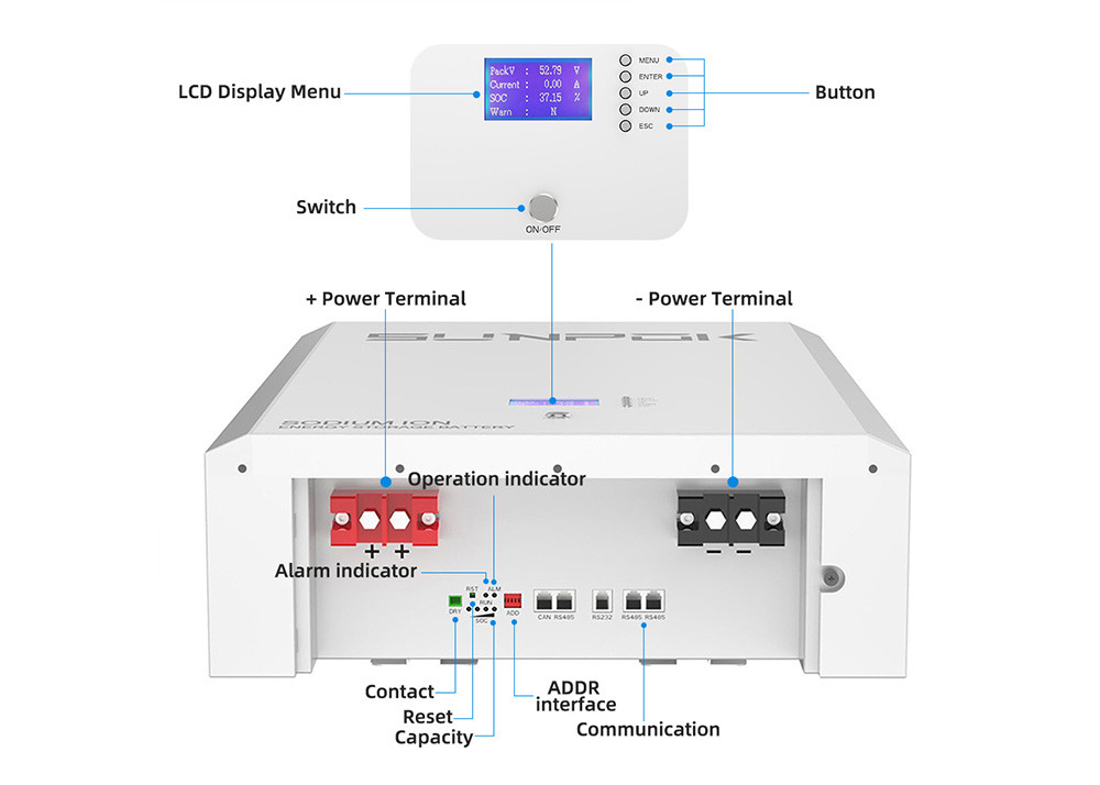 Натриевая батарея Sunpok Energy (также известная как натриевая батарея или на-ионная батарея) обеспечивает высокую безопасность, быстрое время подзарядки и высокую емкость.3, ROHS, IEC62619 и CE, и имеет номинальное напряжение 48V/51.2V.
